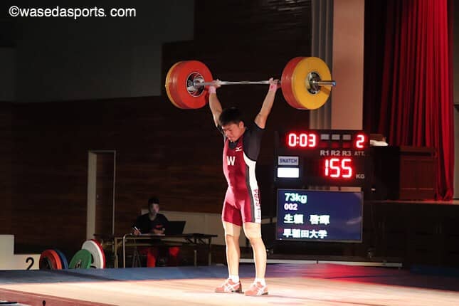 まずは男子。今大会、73キロ級に出場した生頼啓暉(スポ2¬=兵庫・明石南)が自身の自己ベストを更新し、見事優勝を果たした。記録が伸びている要因として、「体重が増えて、パワーがついた」と語る生頼。特に、スナッチの記録が6月に行われた東日本大学対抗選手権の時に比べて、9キロ更新の127キロを成功させた。C&Jでは、練習の時に165キロのクリーンに成功していることもあり、165キロに挑戦するが、失敗に終わる。「玉砕しました」と悔しさをにじませるものの、充実した表情を浮かべた。今の調子をさらに上げて、自己ベストをまた更新する姿に期待したい。