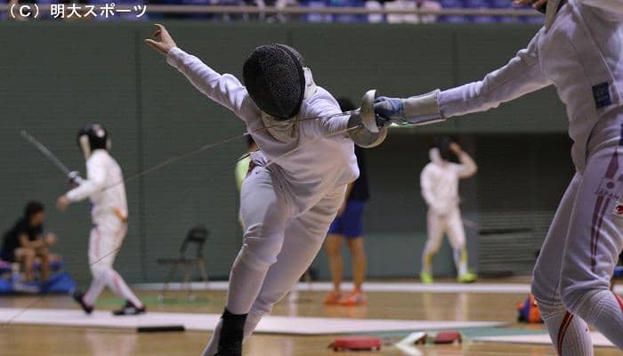 強敵相手に善戦を繰り広げた。決勝戦、中村の相手は高校時代から共に戦ってきた国内ジュニアランキング2位の原田(慶大)。序盤、相手のタイミングを見計らい得意のフレッシュ(注)を決めると、一時13―10にまでリードを広げる。しかし「リードしていても相手が迫ってくるのがしんどかった」(中村)と相手に連続得点を許し、試合終了間際に同点に。サドンデスにもつれ込むと「我慢できずに攻めてしまった」(中村)と焦りからフレッシュを外し、相手にカウンターを献上。惜しくも優勝には手が届かなかった。