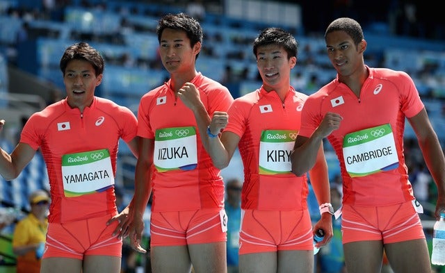 リオデジャネイロ五輪で陸上男子400メートルリレー予選が8月18日に行われ、予選2組に出場した日本(山縣亮太、飯塚翔太、桐生祥秀、ケンブリッジ飛鳥)は37秒68のアジア新記録をマーク、ジャマイカを抑え全体2位で決勝に進んだ。