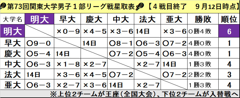今リーグでいまだ1勝もできていない明大にとって、次戦の法大戦が勝ち星を挙げるラストチャンスとなる。勝っても負けても最下位は確定しているが「入替戦につながる試合をしたい」(合戸主将)。明大の意地を懸けた戦いはまだまだこれからだ。