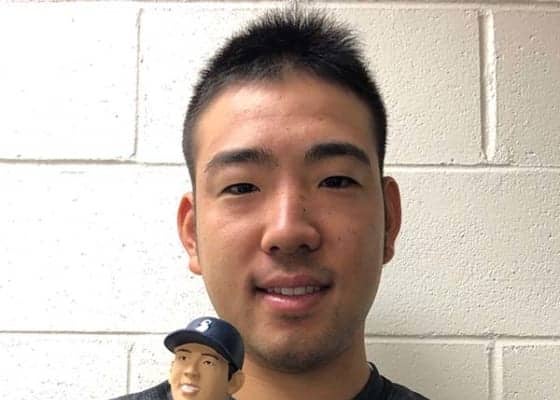 シーズン序盤には球団の公式誌の表紙を飾った菊池だが、球団の期待の高さを示すように、遂にボブルヘッド人形が球場のグッズショップに初登場した。その感想を求めると「似てますかね? こっちの方が全然カッコいい!」と苦笑した左腕は「明日頑張ります!」と意気込んでいた。(木崎英夫 / Hideo Kizaki)