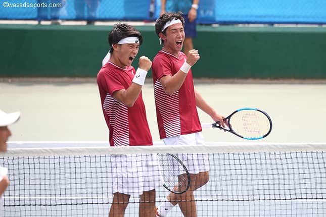 パフォーマンスはかなり良かったと思いますね。田中も今回の試合までは少し調子が上がりきっていない印象があったんですけど、今回は完全に自分のテニスをやり切れていましたし、千頭も勝敗がかかっている中で、相手も主将で勝ちに来ていたところを気持ちを前面に出して買ってくれたので、勝ちに執着したプレーぶりだったと思います。