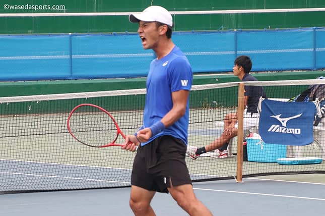 出だしから非常に良いプレーができて、前の中大戦はリードした中で負けてしまって悔しい思いをしたので、本当に最後まで気を抜くことはできず、お互い(千頭昇平、スポ3=愛知・誉高)に「最後の1ポイントまで気を抜かずにやろう」と言っていたので、実際それができて、最後まで真剣に立ち向かうことができたのはすごく良かったです。