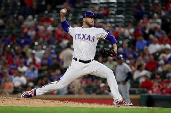 投球動作直前にタイムも止まらず、バックネット裏に高々と投げ上げたアスレチックス 14-9 レンジャーズ(日本時間14日・…