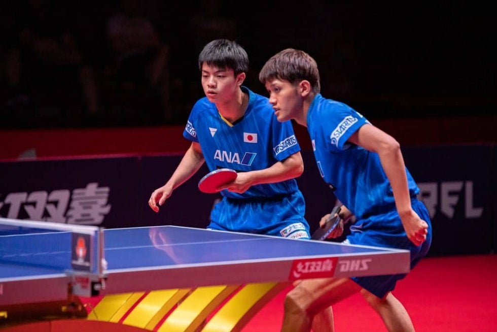 写真:ブルガリアオープンの吉村和弘(写真手前)・宇田幸矢(写真奥)/提供:ittfworld