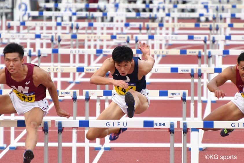 <写真・110メートルHで学院記録を更新した清水> 9月14日、岐阜メモリアルセンター長良川競技場にて天皇賜盃第88…
