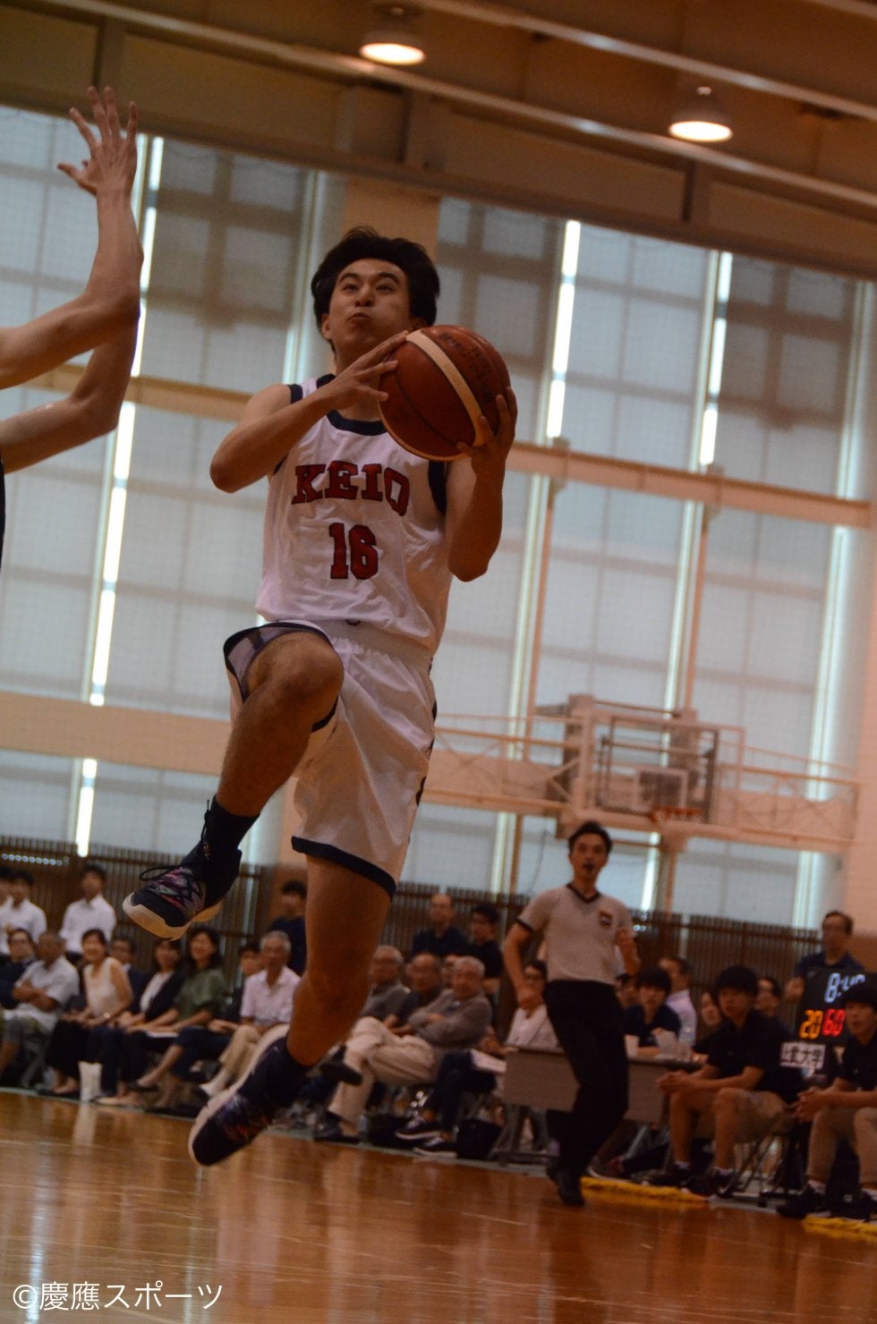 第2Q、慶大は泉のアシストを受けた甲谷勇平(環3・東山)がゴール下で得点し、水谷祐葵(環1・四日市工業)がレイアップを決めるなど2点まで点差を縮める。だが1Qは機能していたリバウンドで優位に立たれると速攻とセカンドチャンスで失点を繰り返してしまう。山﨑の2本の3ポイントなどで巻き返すも相手のドライブを防ぎきれず、10点ビハインドで前半を終えた。