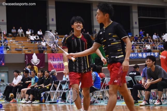 第2シングルスの渡辺俊和主将(スポ4=埼玉栄)、第1ダブルスの小野寺雅之(スポ3=埼玉栄)・友金利玖斗(スポ2=兵庫・村野工)ペアが接戦をものにしたが、そのあとが続かなかった。渡辺は昨日に引き続きファイナルの最後まで粘り、16−19の場面から24−22で逆転勝ち。小野寺・友金ペアも白星を挙げ、この流れで第2ダブルスも取りたいところだったが、浅原大輔(スポ4=宮城・聖ウルスラ学院英知)・吉村徳仁(スポ4=富山・高岡第一)ペアが要所でサーブミスをするなど精彩を欠いてしまう。結果は22−20、12−21、19−21で終わってしまった。続く小野寺は疲れが見え、相手に圧倒されてしまった。