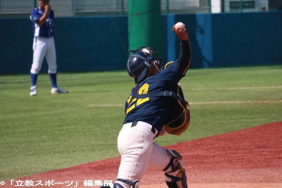 社会人チームに連敗して、力の差を見せつけられた立大。オープン戦ラストゲームに勝利して、リーグ戦に弾みをつけたい。リーグ戦直前試合のためか、投手5人が1イニング以上を投球。各投手走者を出すも得点を許さず、完封リレーを披露する。野手陣は、柴田(社1=札幌第一)が2本の二塁打を広角に打ち分ける活躍を見せた。投打がかみ合い、白星でオープン戦を締めた。