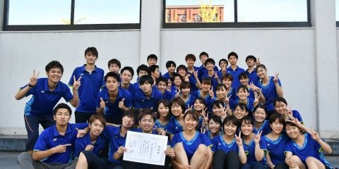 <写真・賞状を囲み記念撮影する部員たち> 9月19日、龍谷大学体育館深草キャンパスにて関西学生バドミントン秋季リーグ…