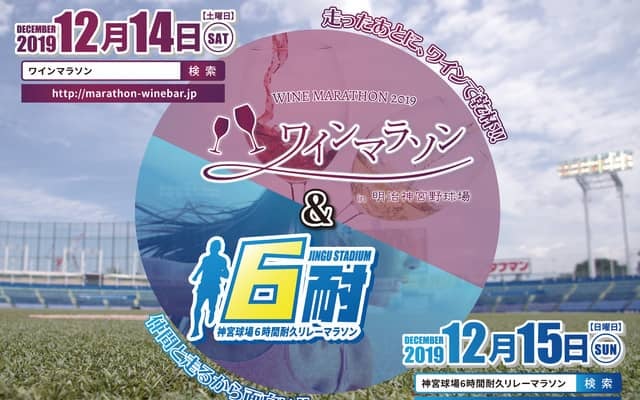 開催日は、ワインマラソン2019が12月14日(土)、6時間耐久リレーマラソンが12月15日(日)。会場は、どちらも明治神宮野球場。参加費 ワインマラソン2019 満20歳以上6,300円/人、6時間耐久リレーマラソン 3~4名チーム6,000円/1名、5名チーム5,000円/1名、6~10名4,500円/1名、11~15名4,300円/1名。各税抜き。申込みは、それぞれの公式サイトから行う。11月17日(日)締切。