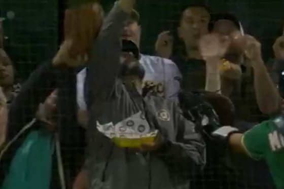 【動画】豪快に食べ物が飛び散った… ファウルボールで男性ファンの“ディナー”が台無しになった決定的瞬間