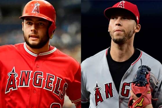 エンゼルスのデビッド・フレッチャー(左)とアンドレルトン・シモンズ【写真:Getty Images】