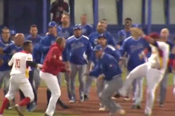 壮絶な大乱闘が勃発! 五輪予選で両軍入り乱れ、顔面から流血する選手も… | 野球