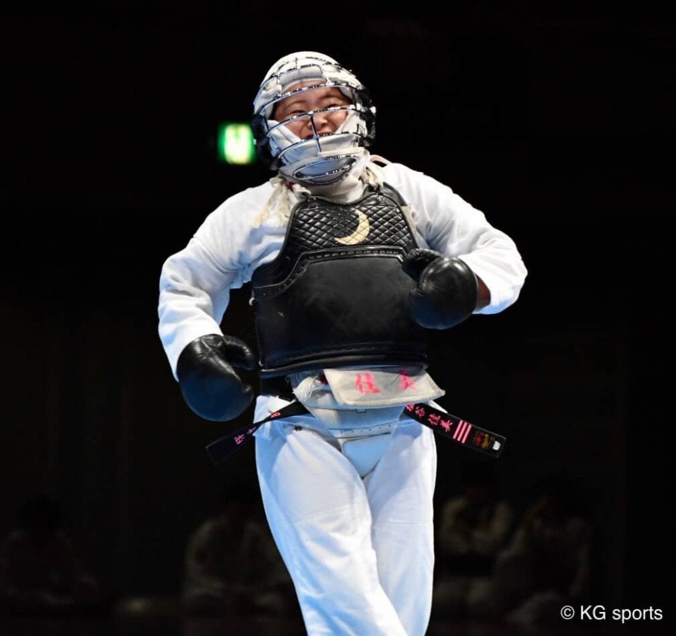 <写真・優勝を決め、笑顔を見せる塩谷> 9月22日、丸善インテックアリーナにて2019年度日本拳法総合選手権大会の個…
