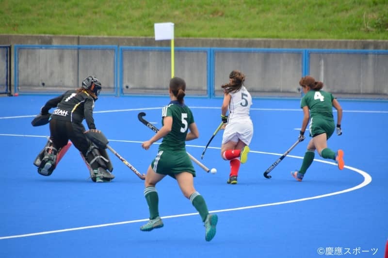 上々のスタートを切った慶大だったが、第2Qは2分と6分にそれぞれフィールドゴールを決められてしまう。しかし慶大も見せ場を作る。小泉理央(政4・慶應湘南藤沢)がカウンターで相手を突破しサークルイン。しかしシュートできず、そのこぼれ球を拾った上口が再び挑戦するもやはりシュートが打てず、2点ビハインドで前半を折り返す。