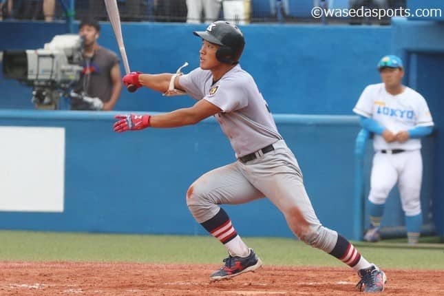 1回戦では東大に先制を許したが、この日は慶大が先取点を奪う。初回から1番・下山悠介(1年)の中前打、続く中村健人(4年)の左前打で好機をつくる。その後5番に座った正木智也(2年)に中前適時打が飛び出し2点を先制した。組み替えた打順がうまく機能し、試合を一気に慶大ペースへと引き込む。2回には下山の適時打で1点を追加。この日3安打2打点を記録した下山は、春季リーグ戦に引き続き1年生ながら実力を存分に発揮した。
