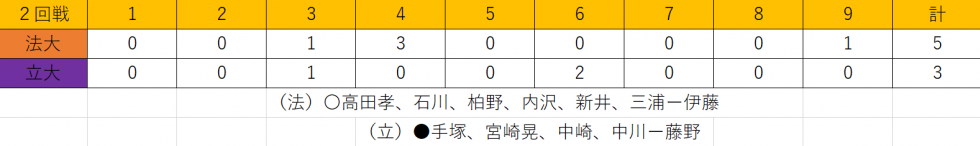 勝てないということではなくて、投打ともに2試合で力負けしたという感じですね。安打数が違うわけではないし、圧倒的なものを見せつけられたわけではないのですが、明らかにポイントで力を発揮した法政と、出来なかった立教と、そこで力負けしたと思っいてます。