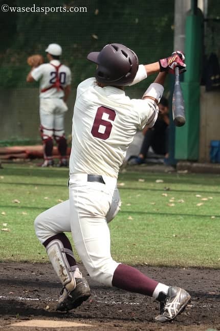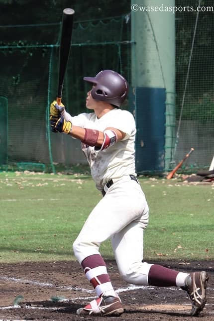 いまの自分の成績的に、出塁率が高くて打率もそこそこ高いというところでの起用でした。これまでは自分がランナーを返すポジションだったのですが、ここ何試合かはランナーがいない状態で回ってくることが多かったです。そのため何か変えなければなというチームの方針として、自分がまずリードオフマンになって塁に出て、須能と康祐さん(中村、教3=早稲田佐賀)がつないで、4年生に返してもらうというかたちをこの試合は取りました。