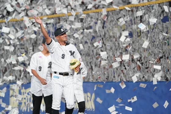 ロッテは本拠地ZOZOマリンスタジアムで行われた日本ハム戦に6-1で快勝。福浦和也内野手の引退試合を白星で飾った。初回に鈴木、井上、清田の3本の適時打で3点を先制すると、2回にも井上が適時打を放ってリードを広げた。先発の石川は7回6安打1失点の好投で8勝目。最後は一塁に回った福浦が平沼のライナーをダイビングキャッチで掴む超美技でゲームセットの瞬間を迎えた。ロッテは楽天に0.5ゲーム差に接近。日本ハムは先発の堀、2番手の西村が崩れた。