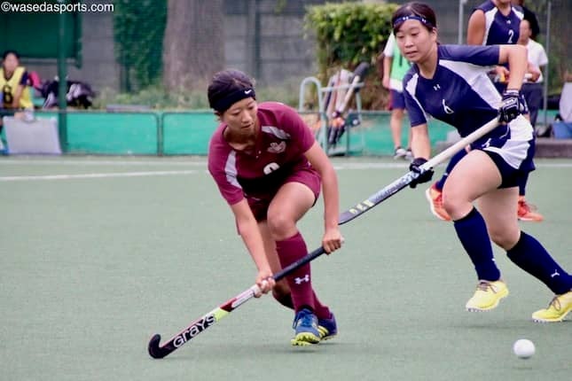 試合は早大のセンターパスで開始した。第1Q、早大は不安定なパスワークで相手にボールを献上すると、学習院大にオフェンスのペースを握られてしまう。ゴールこそ破られなかったものの、相手の強烈なヒットからゴール前にボールを運ばれるシーンも多く、ヒヤリとする場面が続いた。第2Qには初のペナルティコーナー(PC)を獲得したがこれを決めることはできず、前半は苦しい展開となった。