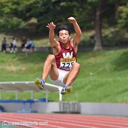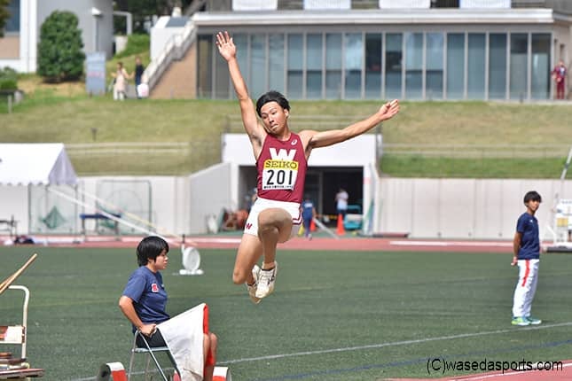 対抗走幅跳には2人の4年生がエンジのユニホームをまとい、競技に臨んだ。中村健士(スポ=東京・調布北)と髙内真壮(スポ=栃木・作新学院)である。2人にとって今年の早慶戦は特別な一戦となった。実に5年ぶりの直接対決だったのである。