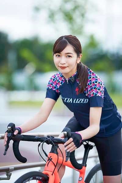 シューズ:ウエーブライダー22(ミズノ) 自転車:TARMAC DISC EXPERT/バイクウェア トップス:SL PRO JERSEY SS WMN/バイクウェア パンツ:SL R BIB SHORT WMN/グローブ:BODY GEOMETRY GRAIL GLOVE(以上、Specialized)