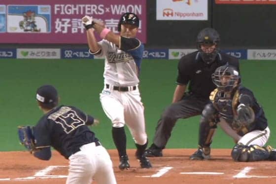 右前打を放った日本ハム・田中賢介【画像:パーソル パ・リーグTV】