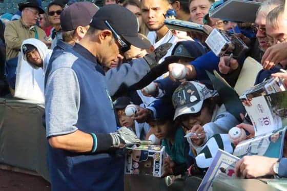 即席サイン会に応じたマリナーズの会長付特別補佐兼インストラクター・イチロー氏【写真:木崎英夫】