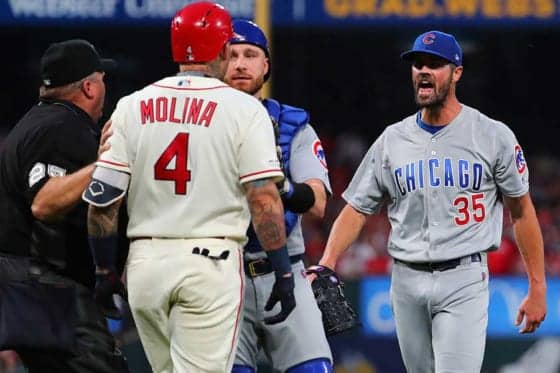 左肘にボールがかする死球にモリーナが大激怒、ベンチ総出で乱闘寸前の事態にカブス 8-6 カージナルス(日本時間29日・セ…