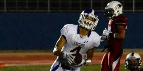 <写真・第3Qに逆転TDを決めたWR鈴木> 9月29日、兵庫県王子スタジアムにて2019年度関西学生アメリカンフッ…