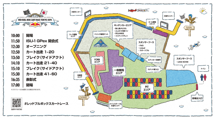 カーブやジャンプ台が設置された下り坂のコースを手作りのカートで駆け抜けるこのレースでは、レースタイム、ボックスカートの創造性、レース前のパフォーマンスの3項目が審査される。審査するのはスキージャンプの高梨沙羅選手やわくわくさんでおなじみの久保田雅人氏らの豪華な顔触れだ。さらにゲストドライバーとして佐藤琢磨選手も参戦する。