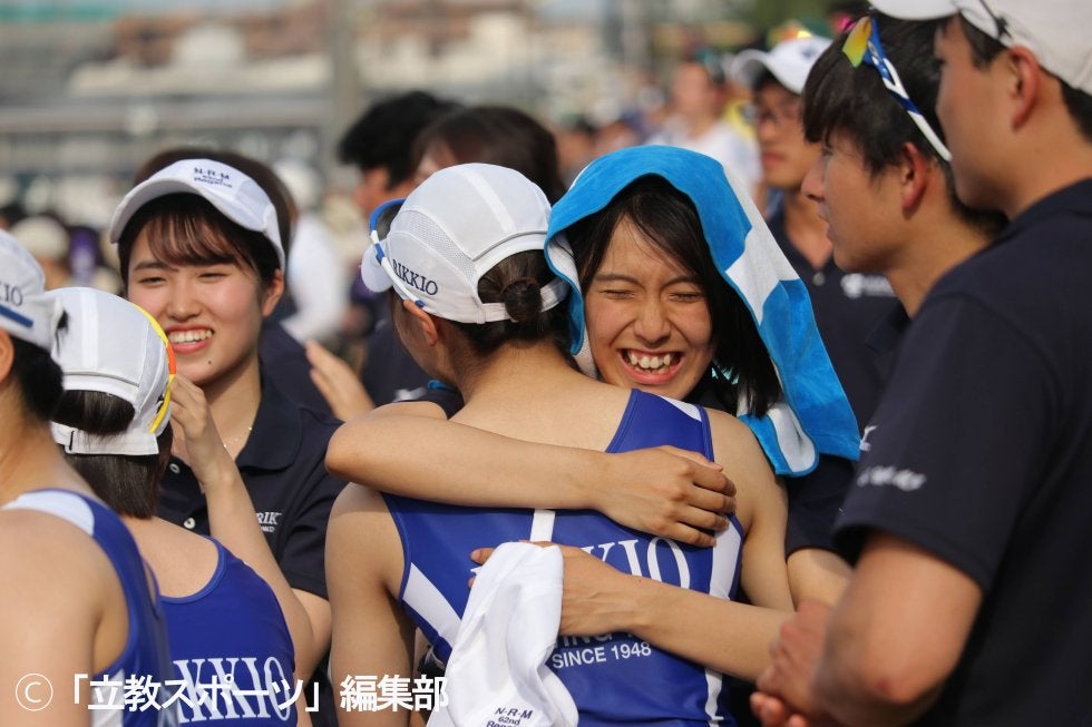 アンカーの瀧渕は両手を天に掲げ、雄たけびを上げた。 立大史上最速タイムで8年ぶりに頂点に返り咲いた。
