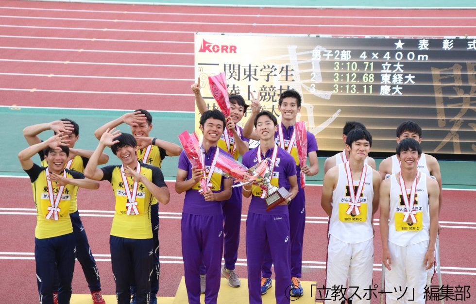 男子2部4×400メートルリレー(マイルリレー)で立大が8年ぶりに頂点に立った! 昨年更新した立大記録を上回る好タイム。 2位と2秒差をつけ、格の違いを見せつけた。