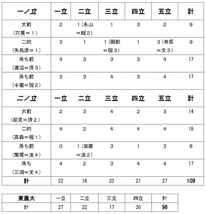 ※リーグ戦は1大学から8人出場し、それを2チームに分けて戦う。勝敗は合計得点で決まる。