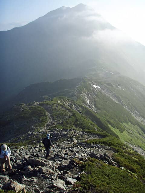 足取りがどんどん軽くなってきたのは、ピストン縦走ということで山小屋に不要な荷物を置いてきた身軽さだけではないだろう。このような時間に、このような場所を歩けるという特別感が体をどんどんと軽くしていく。