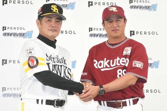 CS公式会見に臨んだソフトバンク・工藤公康監督(左)と楽天・平石洋介監督【写真:藤浦一都】