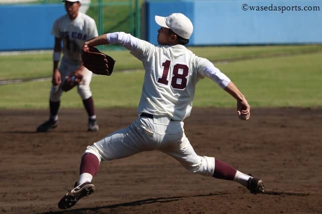 8月、灼熱(しゃくねつ)太陽の下、マウンドにキラリと光る背番号『18』。杉山周平(教4=神奈川・山手学院)だ。昨秋、肩を負傷して以来、長らく登板できずにいた杉山が、帰ってきたのだ。もう選手としての未来は描けない。そんなどん底からの再起。それは、チームの誰もが待ち望んでいたエースの帰還だった。