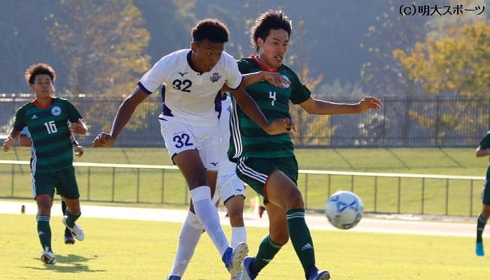 試合を決定づけたのは1年生だった。2点リードで迎えた後半。68分には左サイドのクロスから頭で合わせられ失点。「自分の弱さを見せてしまった」(常本)。無失点をテーマに掲げるDF陣としては、悔しさが残った。しかしこの日がデビュー戦となった大型ルーキー・赤井が明大に再び流れを引き寄せる。71分、小柏のスルーパスに抜け出すと相手GKとの一対一の状況に。右隅に狙いを定め、巻いて蹴ったボールはネットに吸い込まれた。「いい形につながって良かった」(小柏)。先輩FWが最高のパスを繰り出し、赤井のデビュー戦に花を添えた。残り時間も集中を切らさなかった明大。3-1で勝利を収めリーグ戦連勝を11に伸ばした。