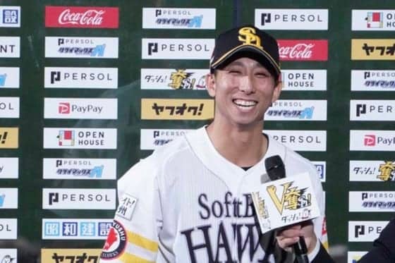ヒーローインタビューで笑顔を見せるソフトバンク・福田秀平【写真:荒川祐史】