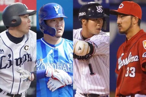 西武・秋山、DeNA・筒香、ヤクルト・山田、広島・菊池(左から)【写真:荒川祐史】