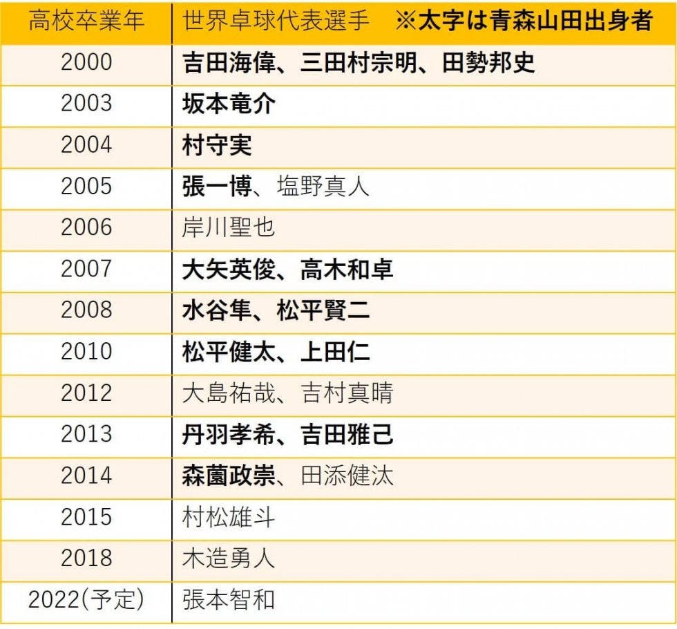 青森山田の歴史はそのまま日本卓球の歴史とシンクロしている。坂本竜介に始まり、張一博、水谷隼、丹羽孝希…。数々の名選手を輩出してきた。