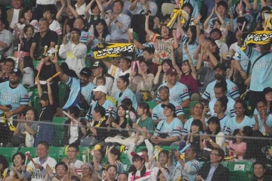 7日にヤフオクドームで行われた「パーソル クライマックスシリーズ パ」1stステージ第3戦のソフトバンク対楽天戦。この試合、一塁側内野スタンドには現在、日本で開催中のラグビーワールドカップに出場し、5日には日本代表と熱戦を繰り広げたサモア代表の選手と家族、約30人が観戦に訪れていた。