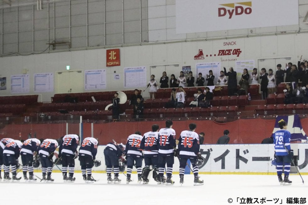 そんな最中、フィフティーンの快進撃を真似たかのように、あるチームが歴史を塗り替えた。サモア戦の勝利で史上初のベスト8が現実的になった5日、立大アイスホッケー部がリーグ第3戦で、神奈川大から白星をあげた。それも、2014年11月8日以来の大金星である。日数にして1792。時間だと43008…。なんて言ってたらきりがないけれど、そう書きたくなるぐらいの長い時間、苦汁をなめてきた。