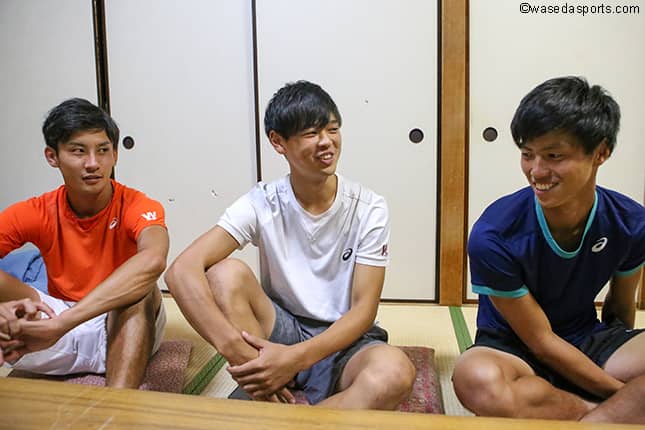 第1回はチームを支える最上級生の3人。主将として今年度のチームをつくり上げてきた 髙村佑樹主将(スポ4=千葉・東京学館浦安)、サポートとしてチームを縁の下から支える早野遼平(社4=東京・早実)、そして、長きに渡り絶対的エースとして君臨してきた島袋将副将(スポ4=三重・四日市工)。長時間にわたるインタビューとなった今回の対談はチーム、同期、後輩、最後の王座に懸ける思いまで、多岐にわたるものとなった