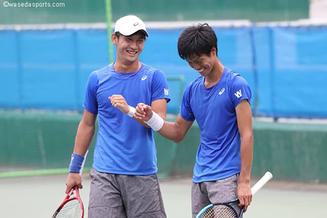髙村 僕は遼平がベンコにいると落ち着くんですよ。僕は結構試合に入り込むので、真面目すぎると変に硬くなったりしてしまうんですけど、アホなので(笑)。遼平の楽しもうとしているのが僕にちょうどマッチするので。僕のシングルスにも入ってくれるんですけど、明大戦のダブルスも将と話すときも僕と話すときもちょうどいい感じでやってくれているのかなと思います。
