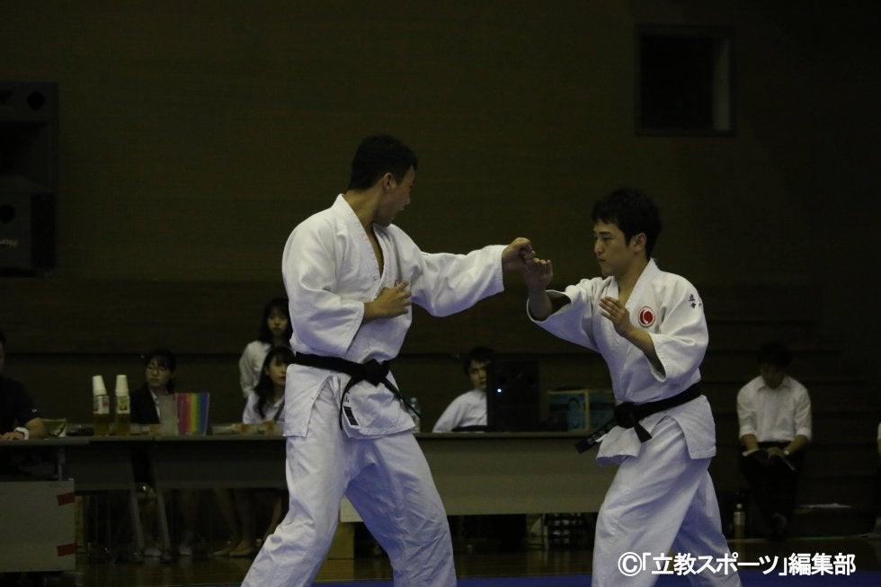 6月30日の個人戦以来の公式戦となった今大会。新入部員5人を迎えた拳法部が団体戦に挑んだ。二人形の部では大門(理4)、秋山(文2)が出場。団体戦である女子の部では小山(現1)、藤村(現1)が男子の部では大門、秋山、市村(コ2)、髙見(法1)、桑原(社1)、八木(社1)が出場した。
