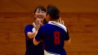 <写真・得点を決め、伊藤とハイタッチをする亀谷(手前)> 10月13日、関西福祉科学大学にて2019年度関西学生秋…