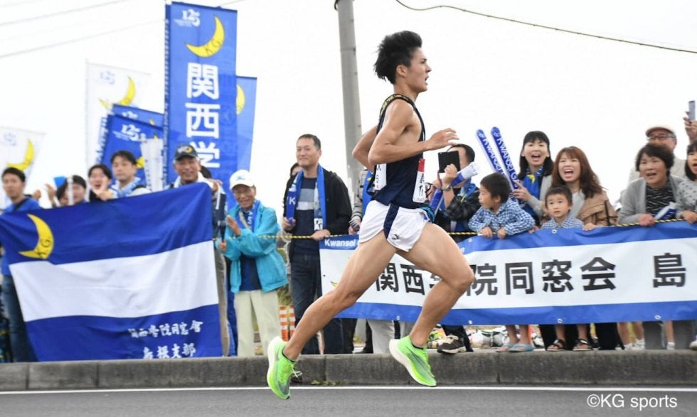 1区を務めた石井(経4)が18位で襷(たすき)をつなぐと、2区の沖見(社3)が区間11位の記録でトップとの差を縮め、13位で3区の川田(経3)につないだ。14位で襷を受け取った4区の川島(商4)が粘り、順位をキープ。そして5区の藪野(商3)は区間7位のタイムとなる、18分47秒で走り順位を1つ上げて13位に。そこからアンカーの藤井(法4)が最長区間となる6区、10.2キロのコースを31分46秒で走り切るも、関学は14位でゴール。目標の10位以内入ることはできず。しかし3年生の活躍が光る、収穫のある大会にもなった。