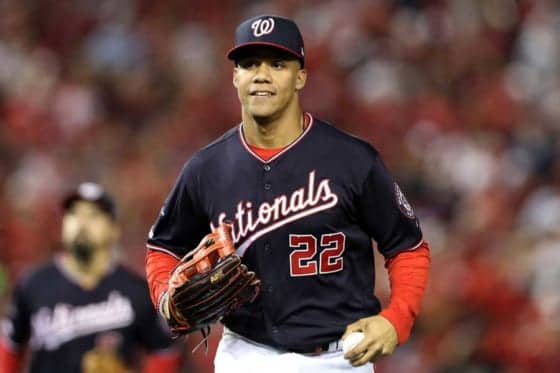 ナショナルズは14日(日本時間15日)、本拠地で行われたカージナルスとのリーグ優勝決定シリーズ第3戦に8-1で快勝。3連勝を飾った。一方、唯一の失点を許した7回のフアン・ソト外野手の守備が動画で公開され、話題になっている。